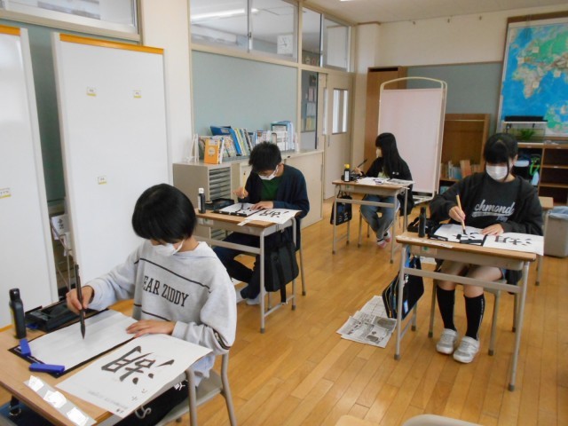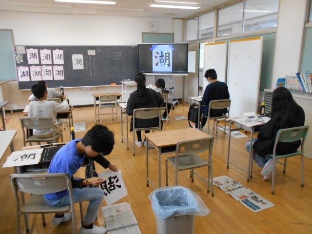 5月26日(月) 6年 書写(毛筆) 公開日 2025/05/27 更新日 2025/05/26 いきいき古沢っ子 三つの部分でできた漢字の組み立てに気をつけて、「湖」を練習しました。部分どうしの位置や大きさの関係を確かめながら集中して取り組みました。