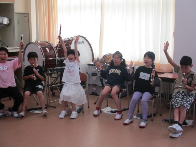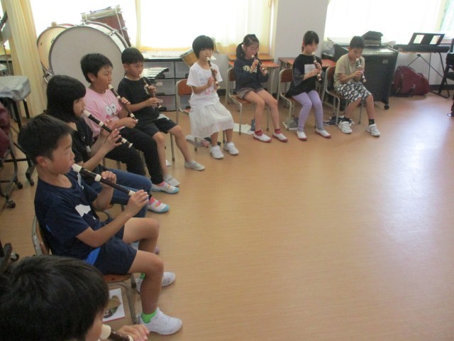 音楽ではリコーダーを使ってリズムリレーをしていました。一人一人オリジナルのリズムを作り、みんなに披露しています。