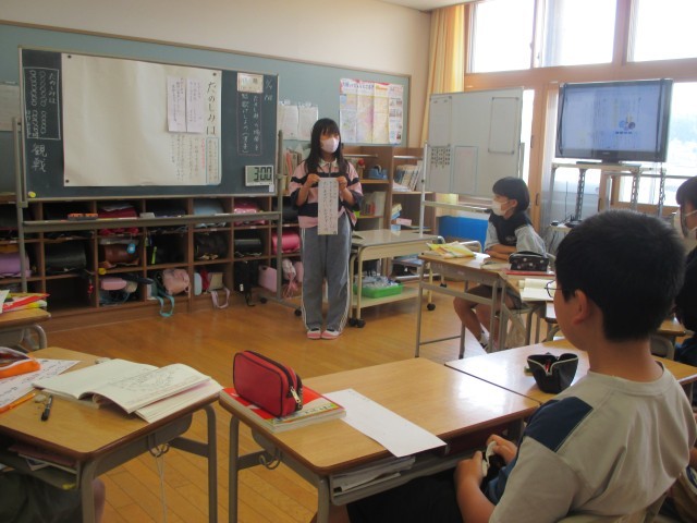6年生国語科では、生活の中の「たのしみ」の場面を見付けて、短歌を作りました。スポーツ観戦やお菓子作り等でのたのしみを短歌にして伝え合っていました。