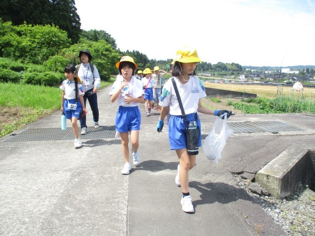 帰り道に「ゴミ拾いをしたい」と言ってくれた人がいました。行きの道を歩く際、ゴミがたくさん落ちていることに気づいたようです。総合のSDGsの学習と繋げながら、みんなでゴミ拾いをしながら学校まで戻りました。これからも、ホクリクサンショウウオがすみやすい自然環境を守っていきたいですね。」