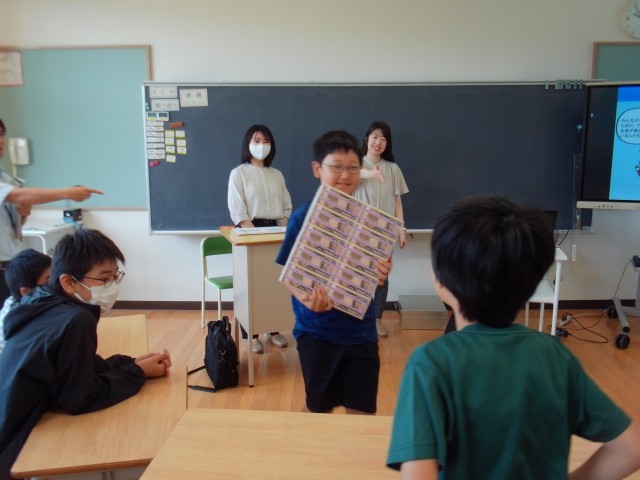 また、税は自分たちの暮らしにどう役立てられているかを教えていただきました。小学校の児童1人当たりに使われる税金は1年間で約92万円だそうです。税金の使われ方を学習し、普段、当たり前に生活していることに感謝の思いをもった子供たちでした。