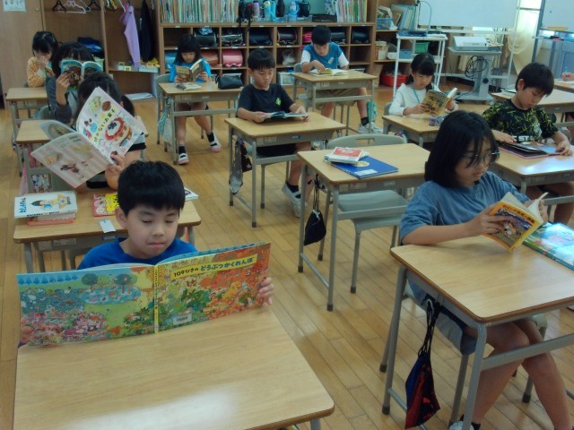 週1回の読書タイムの時間、子供たちは静かに読書にしています。