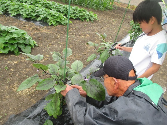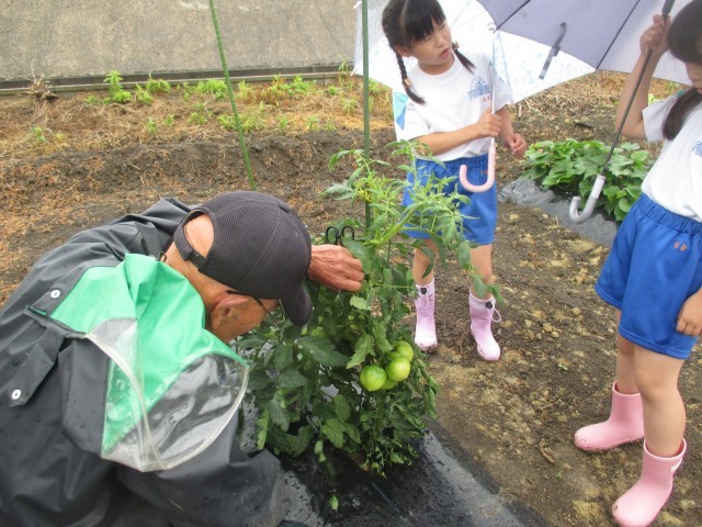 休み時間に、地域の野菜名人の方に野菜の世話の仕方を教えていただきました。これまで本やインターネットで調べてきましたが、まだまだ知らないことがたくさんあることに気付きました。後日、また詳しく教えていただく予定です。2年生も野菜名人を目指してがんばります!