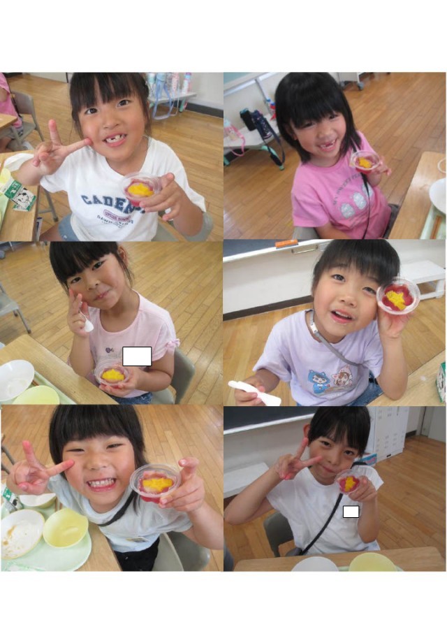 もうすぐ七夕なので、今日の給食は七夕メニューでした。星形ハンバーグや七夕ゼリーを朝から楽しみにしていた1年生。今日もみんなで仲良く、おいしくいただきました。