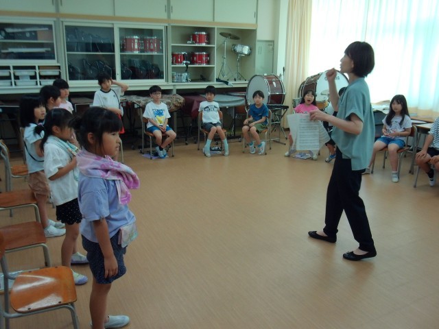1、2年生は、連合音楽会で歌う「Dream & Dream~夢をつなごう~」を練習していました。さすが2年生。歌詞も旋律も覚えて、きれいな声で歌っていました。1年生に歌い始める合図を送ることもできます。1年生も覚えようと真剣に取り組み、元気に歌うことができるようになりました。
