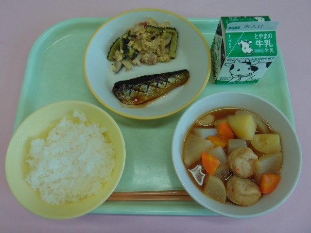 夏が旬の野菜「ゴーヤ」が出ています。ゴーヤ特有の苦みがありますが、あまり苦みを感じず子供たちにも食べやすいように調理してくださいました。
