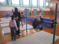 2名の先生に来ていただき、鉄棒教室を開きました。支え技や回り技の基礎から教えて...