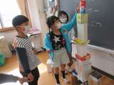 算数科の学習で、箱を使っていろいろなものを作りました。電車やタワー、動物等、グ...