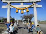 最後は八幡社へ行きました。「春は桜がきれいだよ」と、家の人から聞いていた子供は...