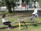 大休憩にグラウンドで、シーソーや雲梯をして遊んでいます。10月最後の日は、晴れて...