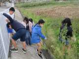子供たちは、グラウンドの落ち葉や学校の東側にある畑や用水のゴミを、協力して集めま...