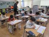 音楽室を覗いてみると、3・4年生が音楽科で「茶色のこびん」の曲を聴き、スイング...