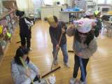 教室をきれいにしたり、下足箱の汚れを取ったりしている1年生。教室や下足箱はピカピ...