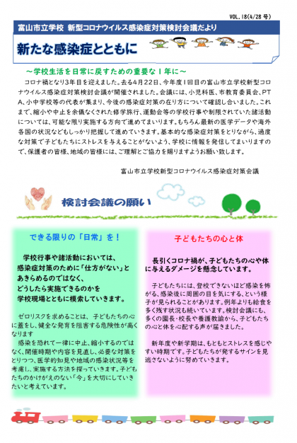 4月28日(木) 「新型コロナウイルス感染症対策検討会議だよりVOL.18」について