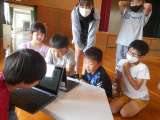 ファミリー班ごとに、本で知識をつけよう委員会の子供たちが作成したスライドをクロム...