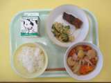 今日は「かみかみ月間」最後の給食です。献立は、ごはん、牛乳、魚の梅風味かば焼き、...