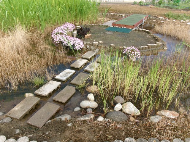 先日、新ビオトープ橋の開通式を行いましたが、反対側まで渡れるようになりました。