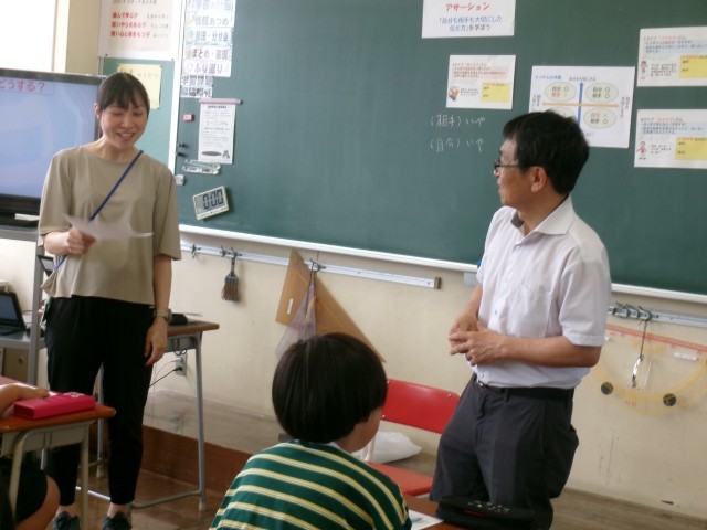 押しすぎさん、引きすぎさん、さわやかさんの3つのタイプ役割演技したり、自分の接し方について考えたりしました。