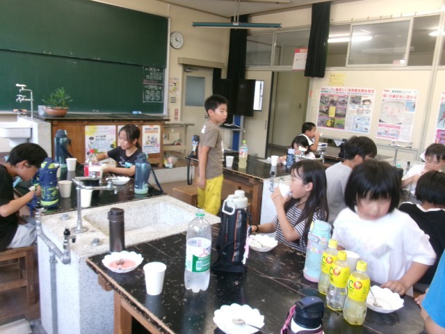 教室でたっぷり遊んだ後、かき氷をいただきます。