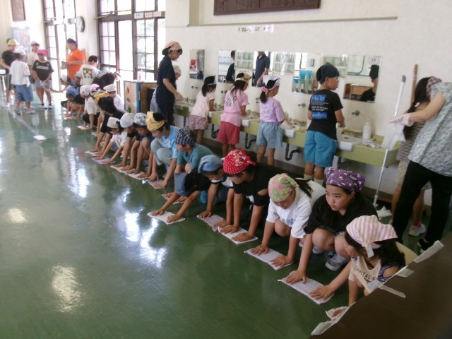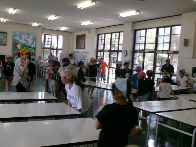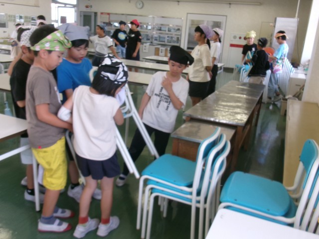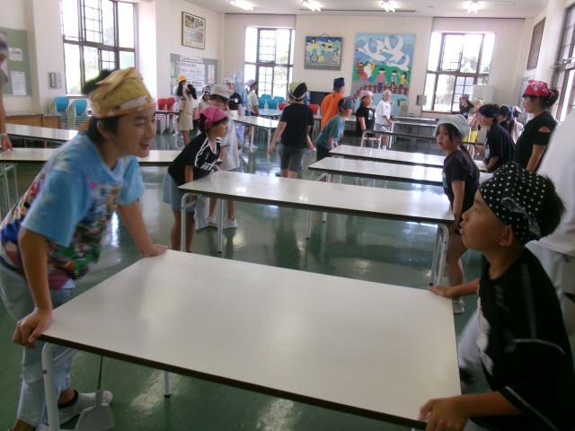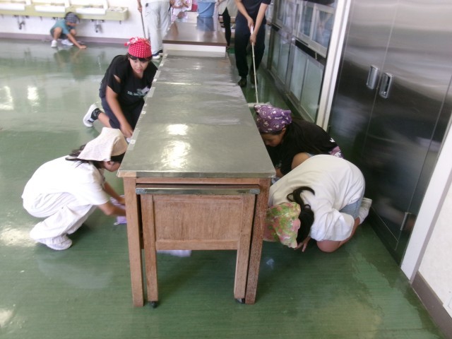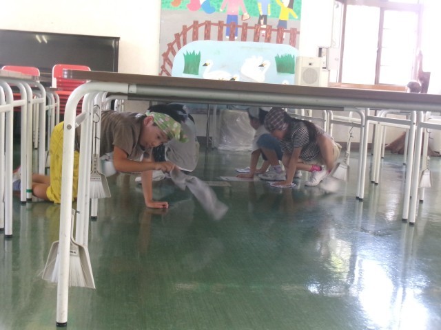 みんなで協力し、おいしく給食をいただいたランチルームをぴかぴかにしました。