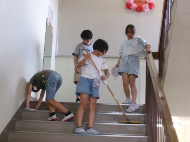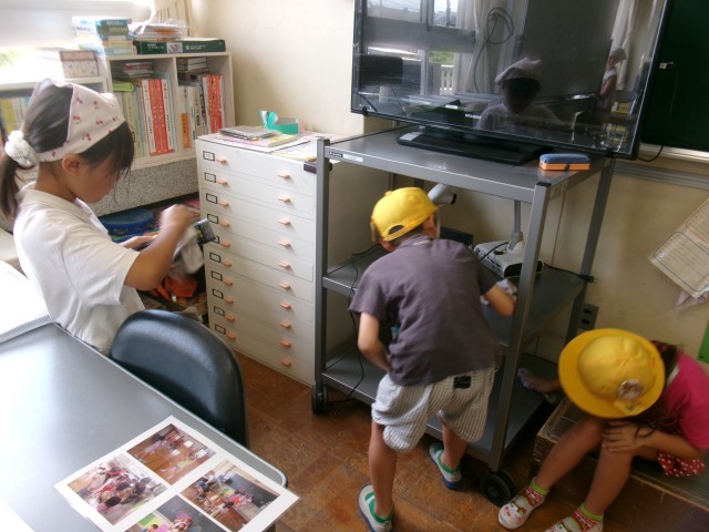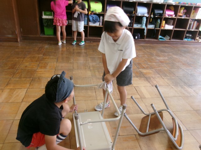 1学期お世話になった机やいすの足の汚れも拭き取ります。