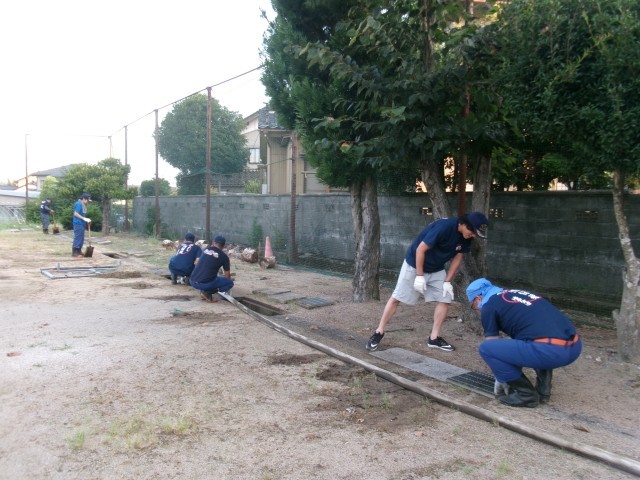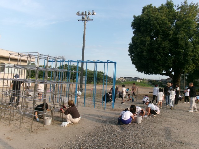 朝6時から、池多っ子、保護者の皆様、池多消防団の皆様にご協力いただき、学校農園やグラウンドの溝がきれいになりました。