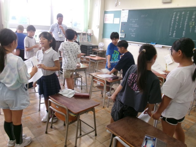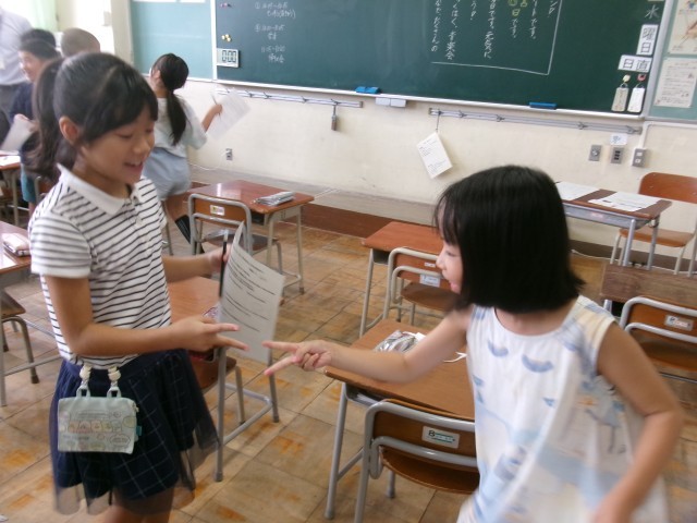 3・4年生の教室では、夏休み思い出ビンゴをし、久しぶりに会ったみんなと仲を深めていました。
