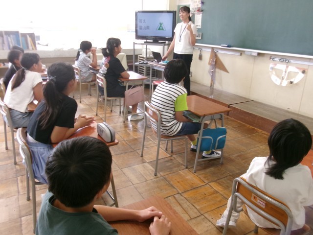 5年生は新しく着任した先生に、自分たちのことをたくさん伝えていました。