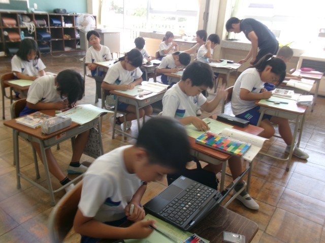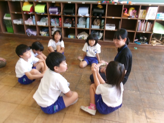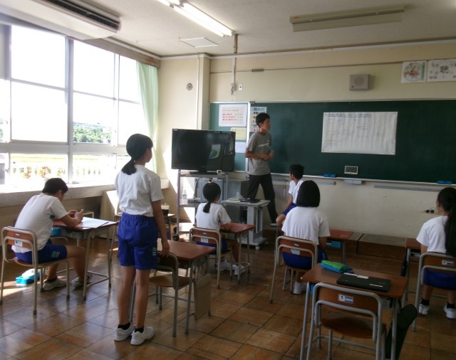 1・2年生の国語の時間は、夏休みの楽しかったことを伝え合っていました。