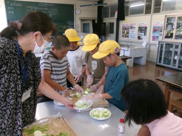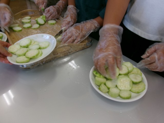 4年生 ヘチマの塩もみ