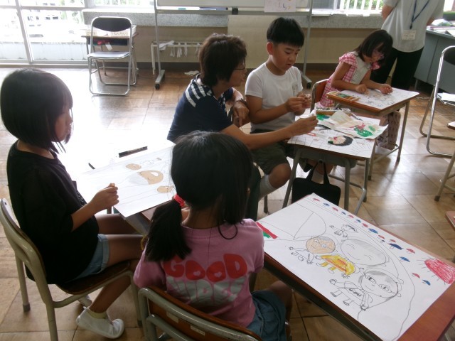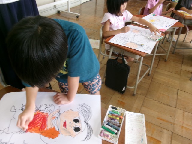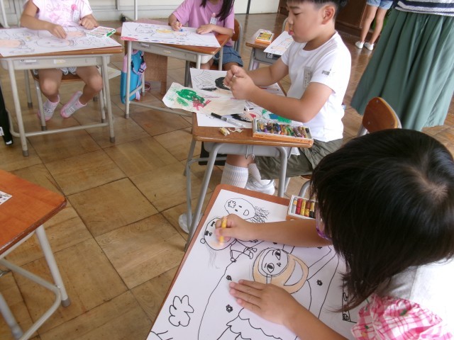 1・2年生は、夏休みの思い出を画用紙いっぱいに描きました。