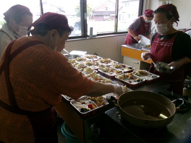 地区センターでは、高齢者の方へのお弁当づくりが行われていました。
