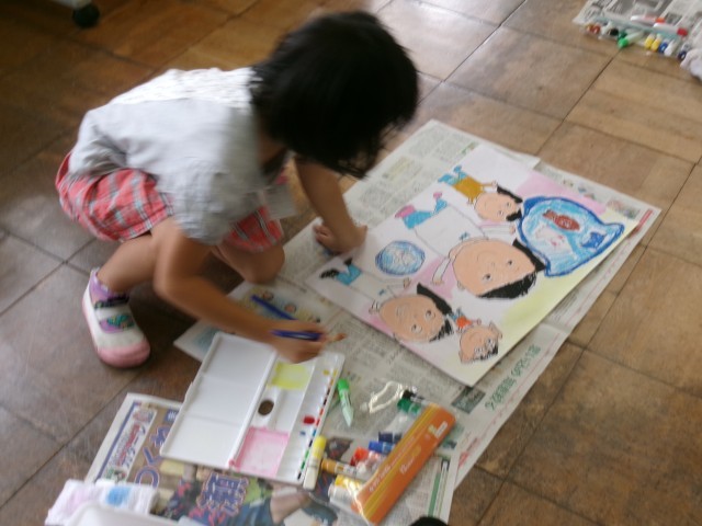 大きな画用紙いっぱいに、大きな絵を描きました。