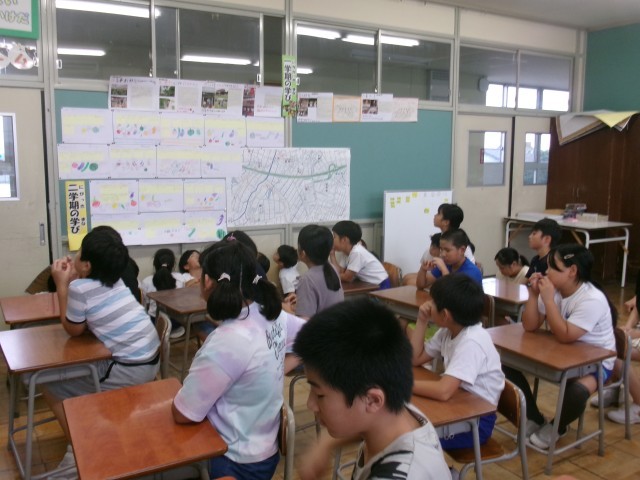 紹介の後、下学年の作品を鑑賞する上学年の姿がありました。