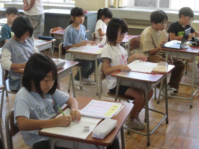 ファミリー学習では、一人一人が漢字や計算、調べたいもの等について、本やクロムブック、電卓等を使って学習する様子を、保護者の方にも見ていただきました。上学年では、学年を越えて話し合いながら、学習を進める姿もありました。