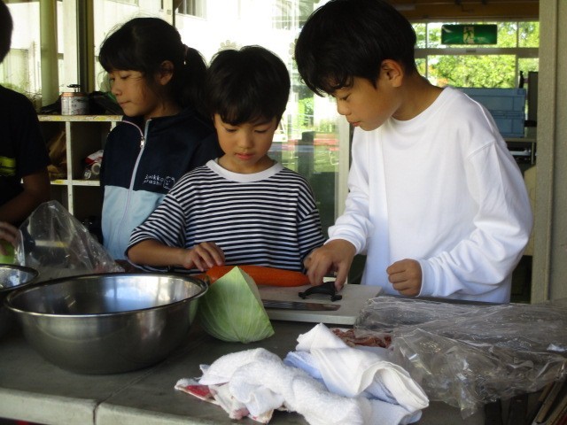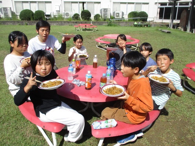 今日のメインの活動は焼きそばづくりです。みんなで協力してとてもおいしい焼きそばが完成しました!