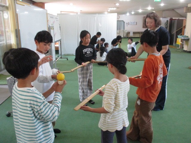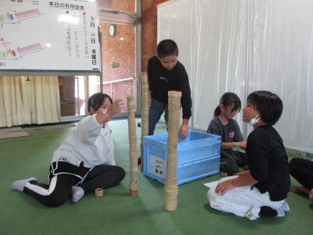 焼きそばづくりがスムーズに進んだので、昼食後にバンブーチャレンジや館内オリエンテーリングにも取り組みました。
