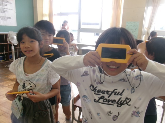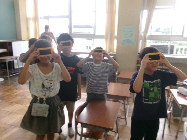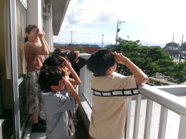 太陽を直接見ると目を傷めるので、遮光プレートを用います。