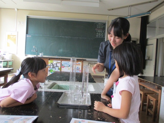 どの入れ物の水が一番多いか、自分の予想と比べながらきらきらした表情で確かめていました。