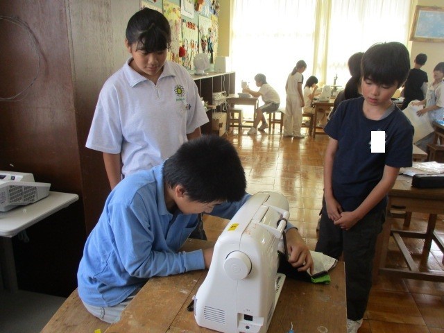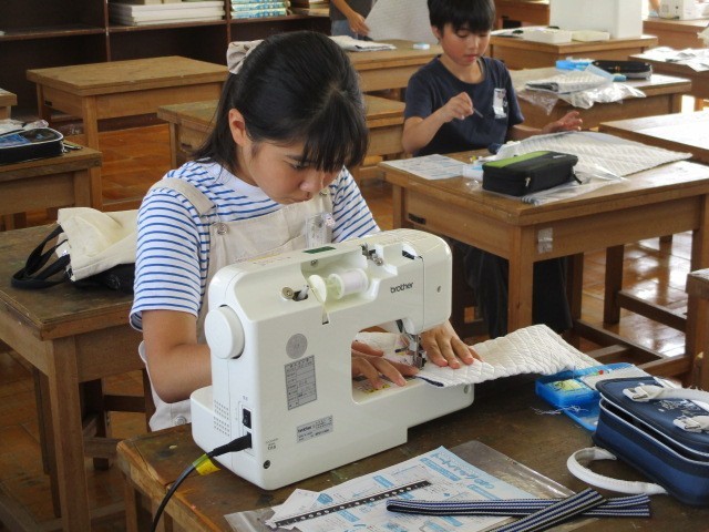 5・6年生は家庭科でトートバッグづくりに取り組んでいます。