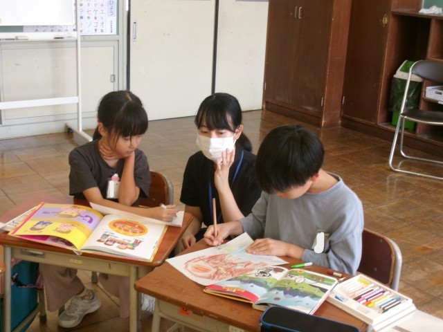 絵本で読んだお話から思い浮かべたことを絵にあらわしました。