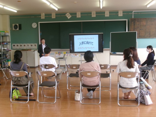 今日は、富山市西保健福祉センターより講師の方をお招きし、入学までの生活準備についてお話を伺いました。