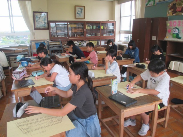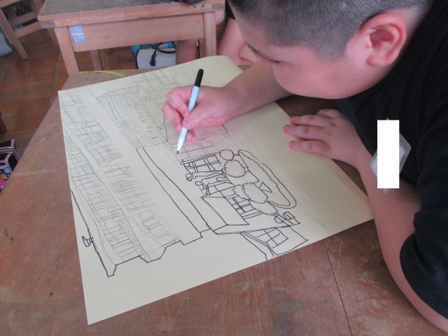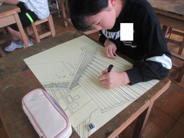 クロムブックで撮った写真をもとに、下絵を描き進めました。