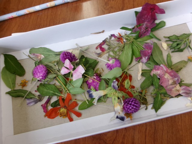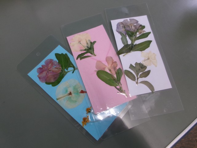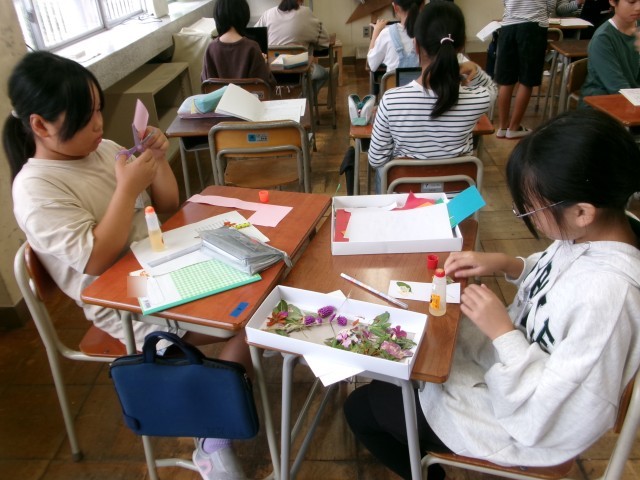 校内に咲いていた花を使って「押し花のしおり作り」など、