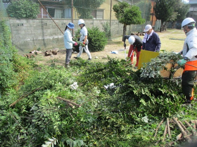 呉羽中学校区の各校の用務員の皆さんが、池多小学校の環境整備に来てくださいました。