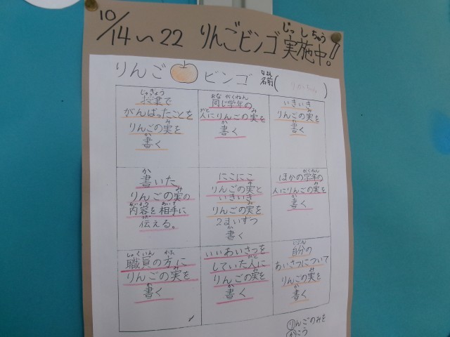 運営委員会の子供がさらにたくさん増やそうと「りんごビンゴ」を企画しました。