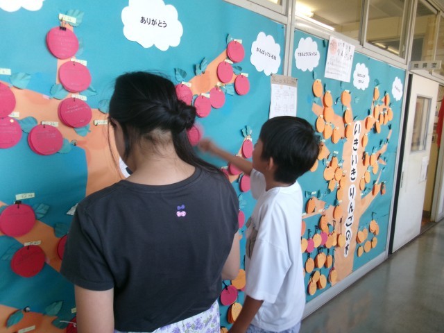 赤のにこにこりんごは、同じ学年の人、他の学年の人、職員の方など、様々な条件で書くことになっています。