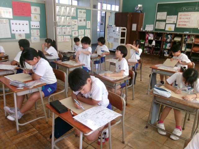 3・4年生は、図工で「のこぎりギコギコ」の学習を始め、今日はデザインを考えました。