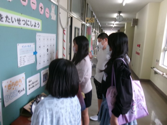 ランチルームに行く子供たちが、すかさずチャレンジしていきます。