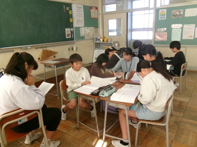 友達に尋ねたり、説明し合ったりする仲のよい5年生です。